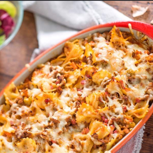 mit Thunfisch, Zwiebeln, Oliven, Paprika und Käse